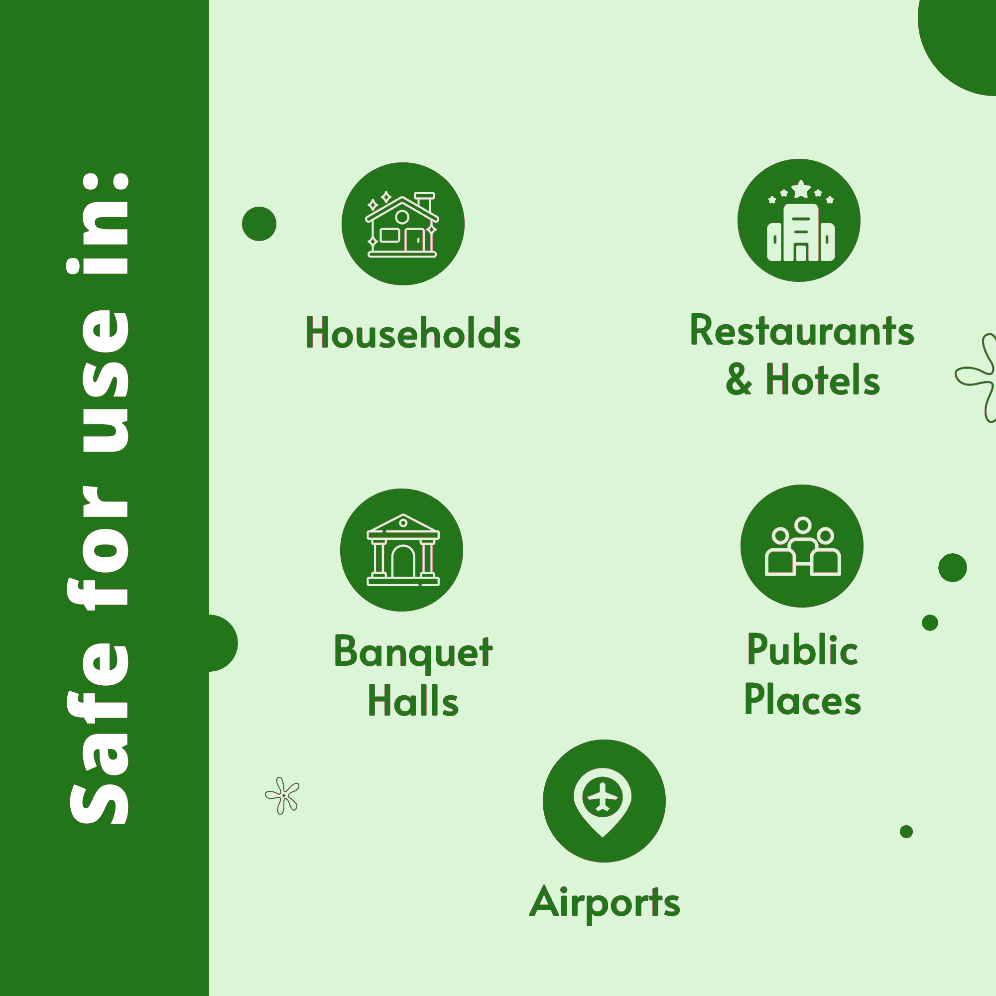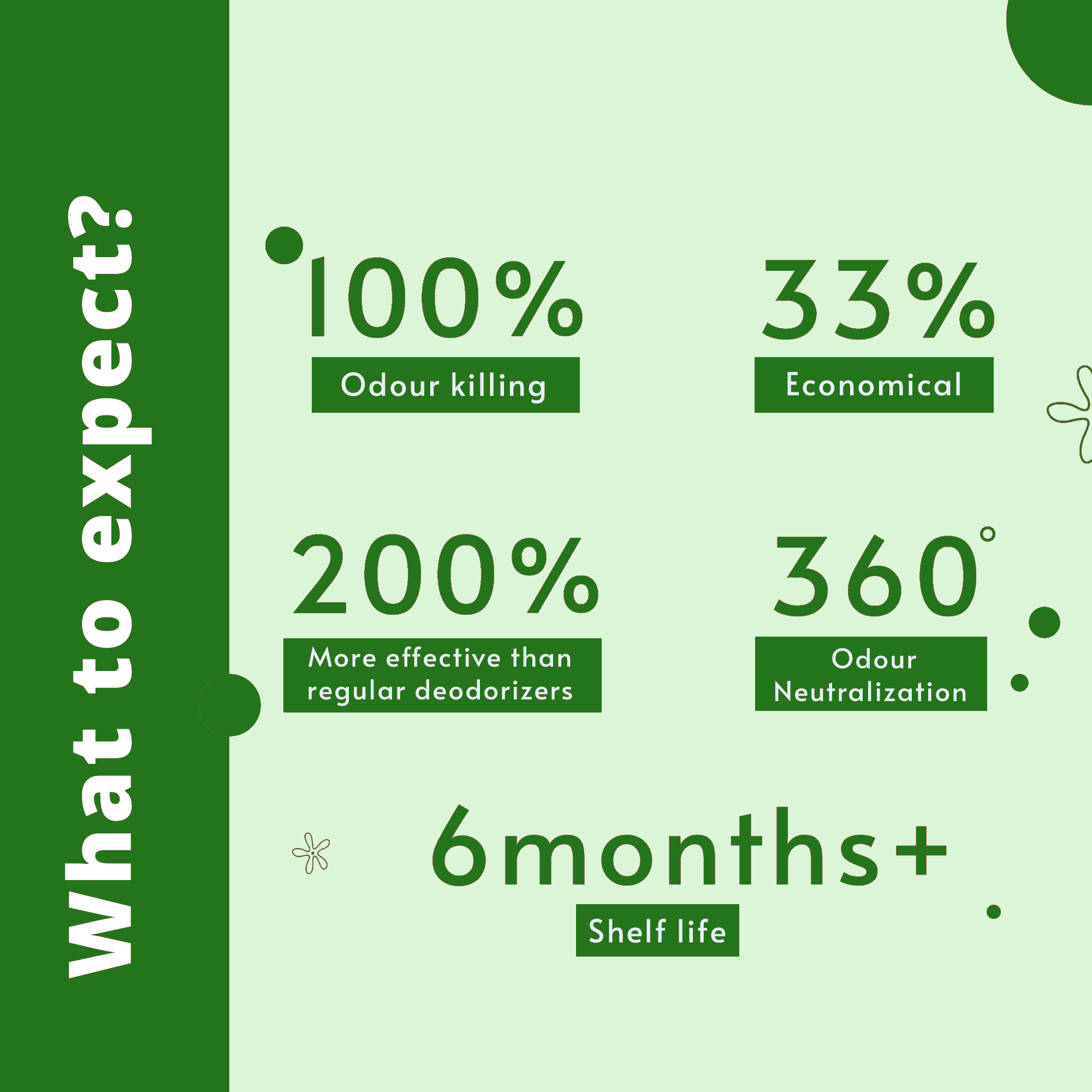 Eliminates odour encrusted in textile floors. Safe for use in households, restaurants, hotels, banquet halls, airports, public and all other places with textile floors.
