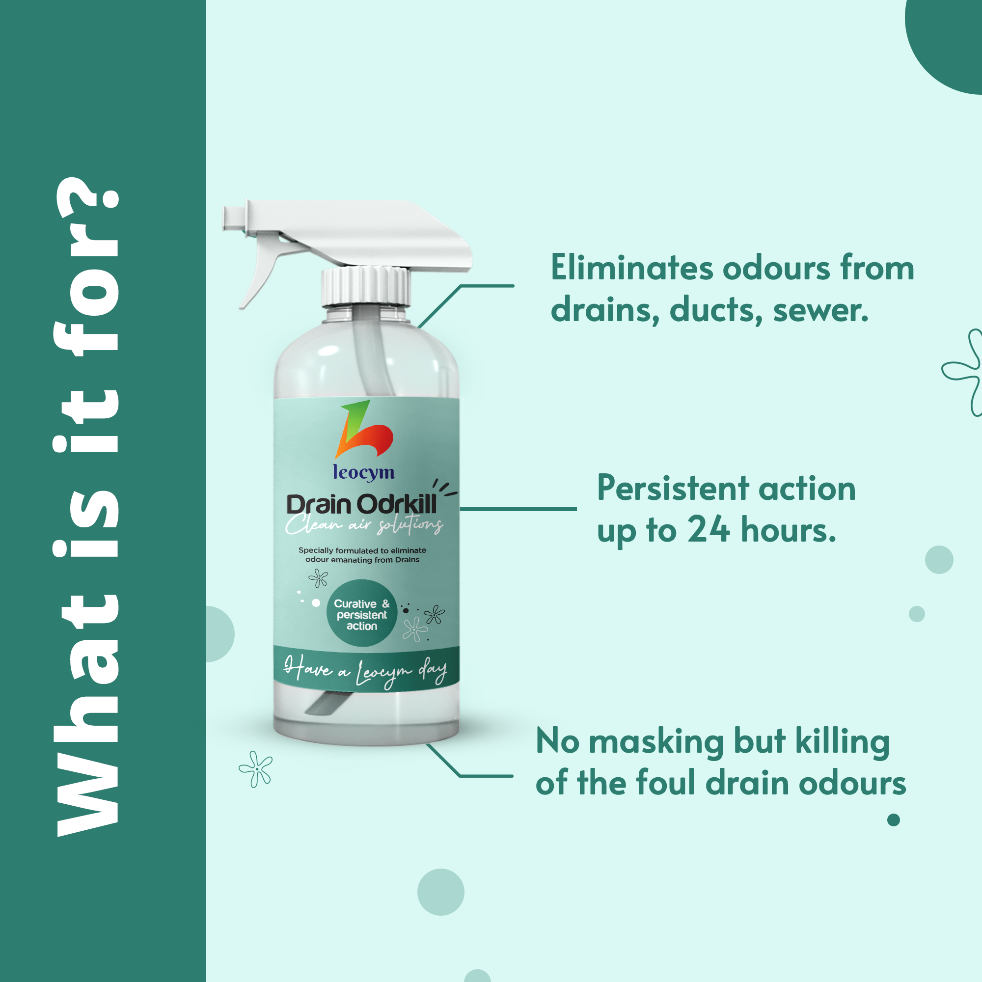 Drain odrkill is a drain odour neutralizer that works effectively to kill odour arising from drains. It is uniquely designed to eliminate the bad odour and kill the germs emanating from drains,duct, sewer, etc.
