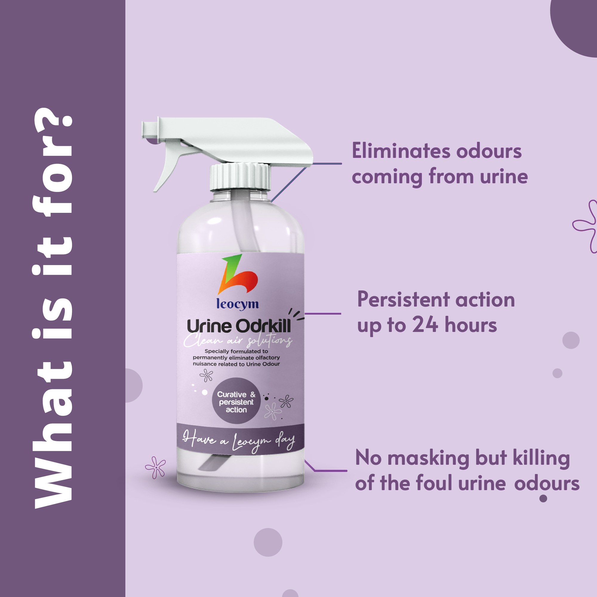 Urine odrkill is a urine neutralizing spray that removes the foul smell arising from urine. The amount and concentration of various waste products from our body causes urine odour. this odour when stagnates in public toilets or in the open, delivers a stingy and foul smell.